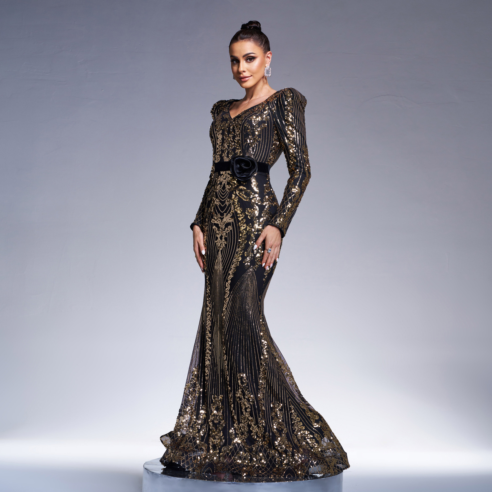 Long Sleeved Formal Dress Cocktail Sequined