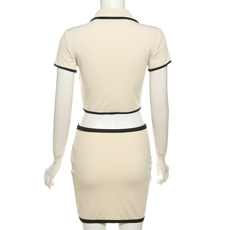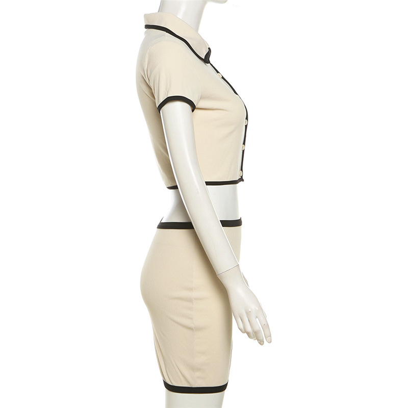 Spring Summer Women Wear Short Sleeved Cardigan Collared Sexy Sheath Skirt Set Skirt