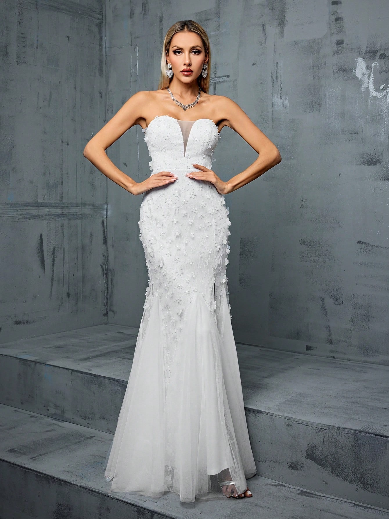 Strapless Evening Dress V neck Gauzy Gown Cocktail Party Weddings