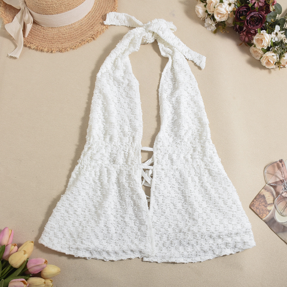 Women Summer Lace up Corset Backless Halter Sexy Trousers Two Piece Sets Women